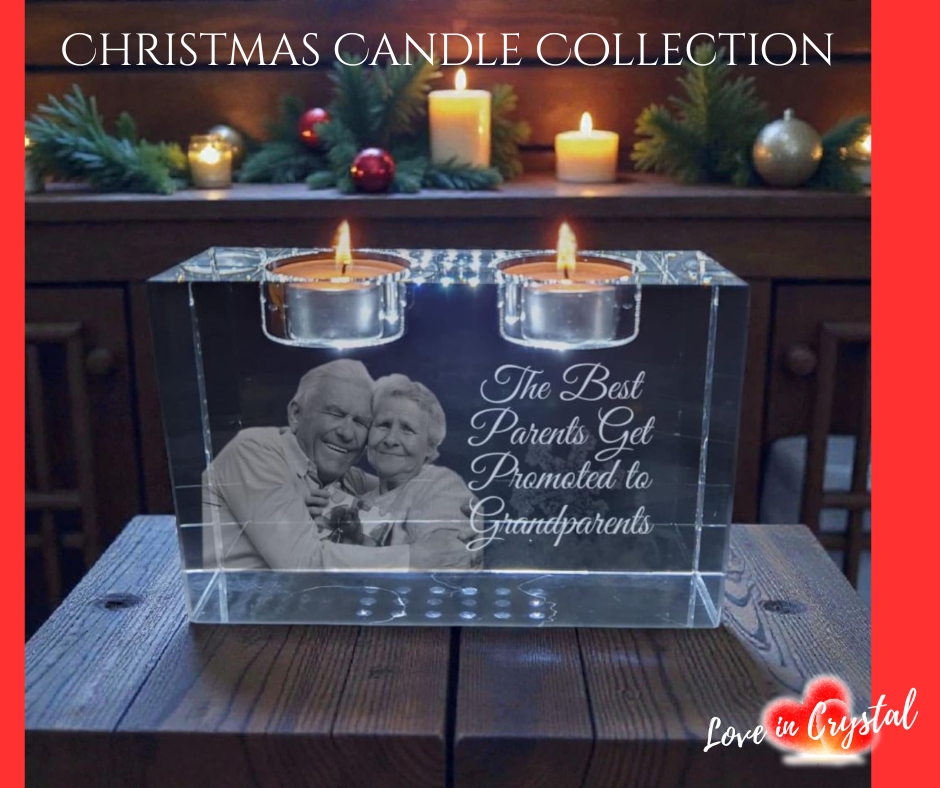 The Parents Crystal Candle Holder...new from our 2021 collection, the perfect way to keep our parent's memories alive or to store those precious photos forever, this twin light candle holder allows us to put 2 images with words of importance, allowing it to make it exclusive and unique to our very own family.